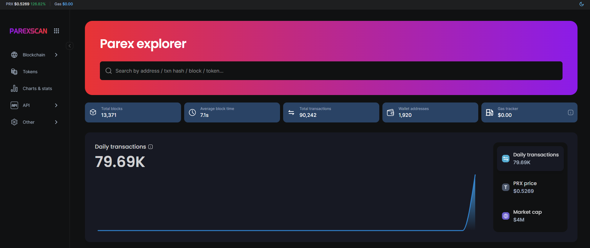 ### **Parex Chain Explorer by Blockscout** <a href="#chiliz-chain-explorer-by-blockscout" id="chiliz-chain-explorer-by-blockscout"></a>